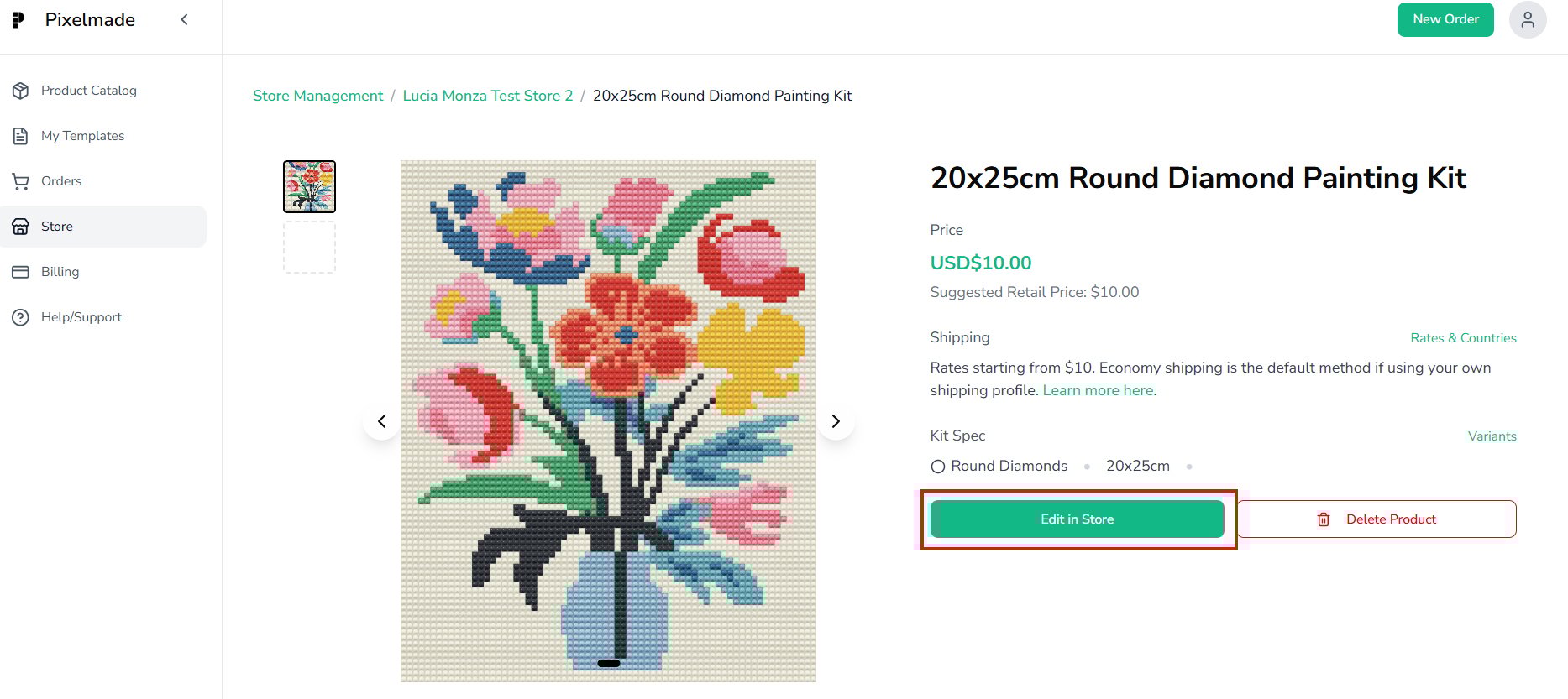 - To edit your product in your Shopify store, click "Edit in Store" . You can customize product name, images, details and pricing.