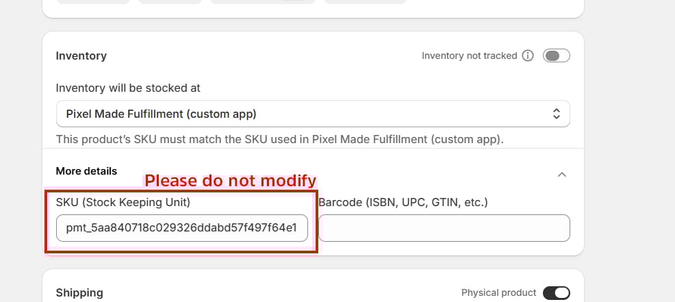 Remember NOT to modify any information under "inventory" once products are added, as it may affect order syncing.