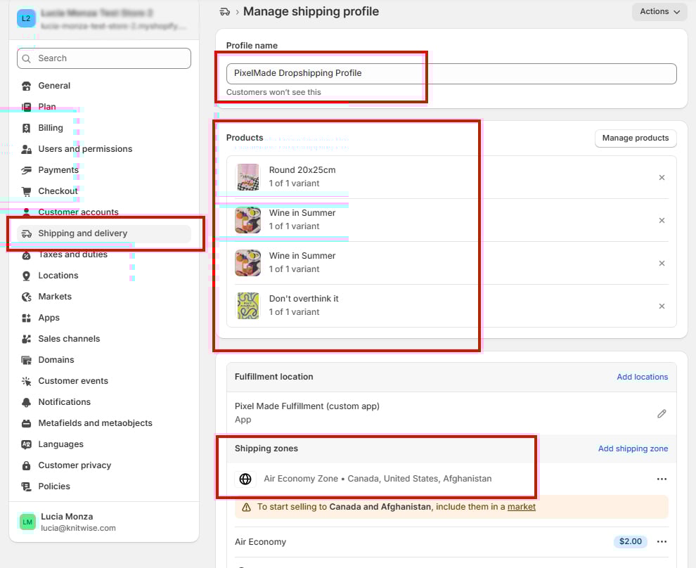To see the shipping profile details, click the "Shipping" tab. You can find more instructions about how to manage the Shipping profile here.