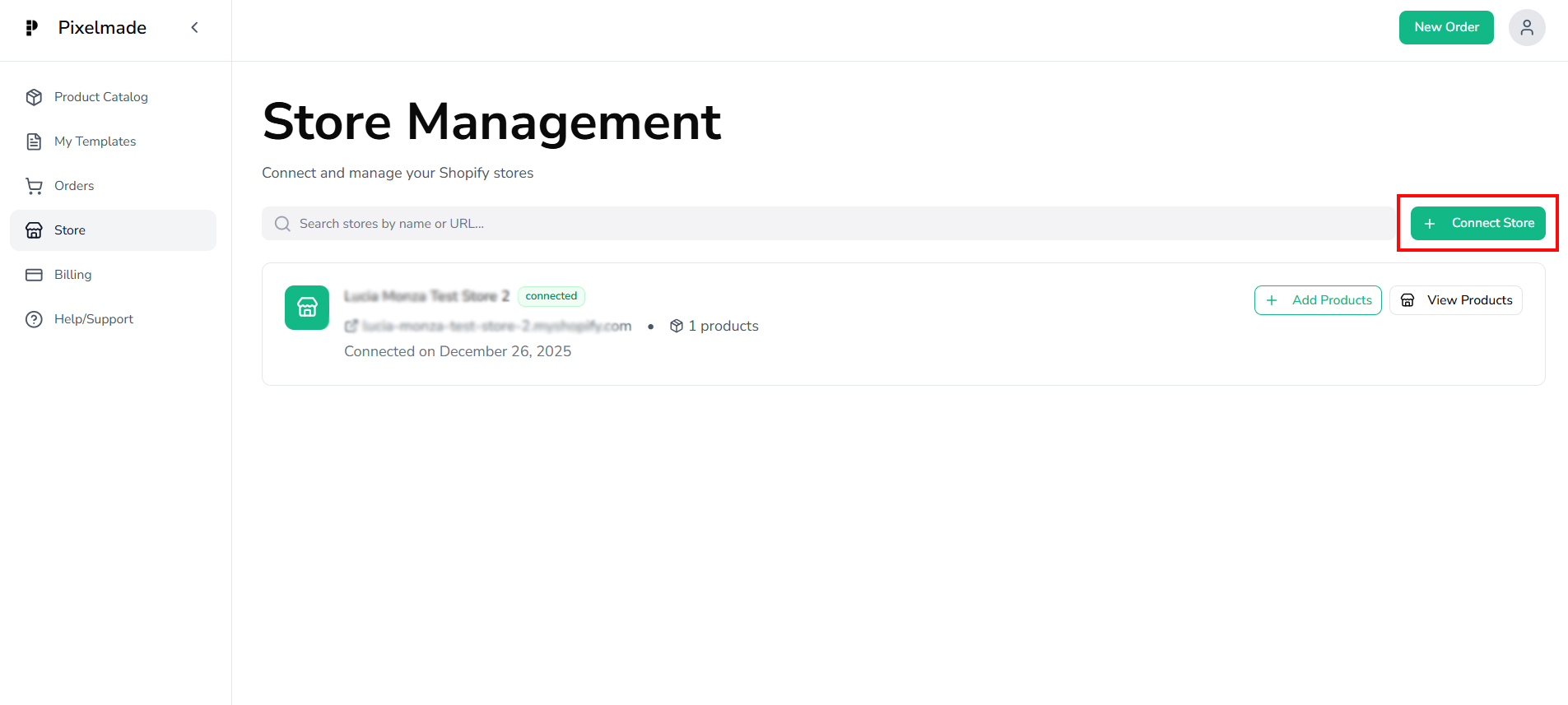 - Once you have created your account, go to the "Store" section within the app and click on "Connect Store".