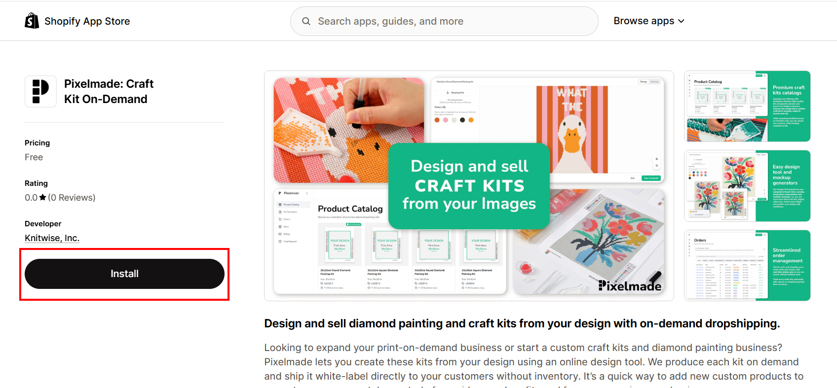 By connecting your Shopify store with the Pixelmade app, you will be able to seamlessly integrate and manage your custom craft kits within your Shopify store environment. If you encounter any issues or need further assistance during the process, please don't hesitate to reach out to our support team