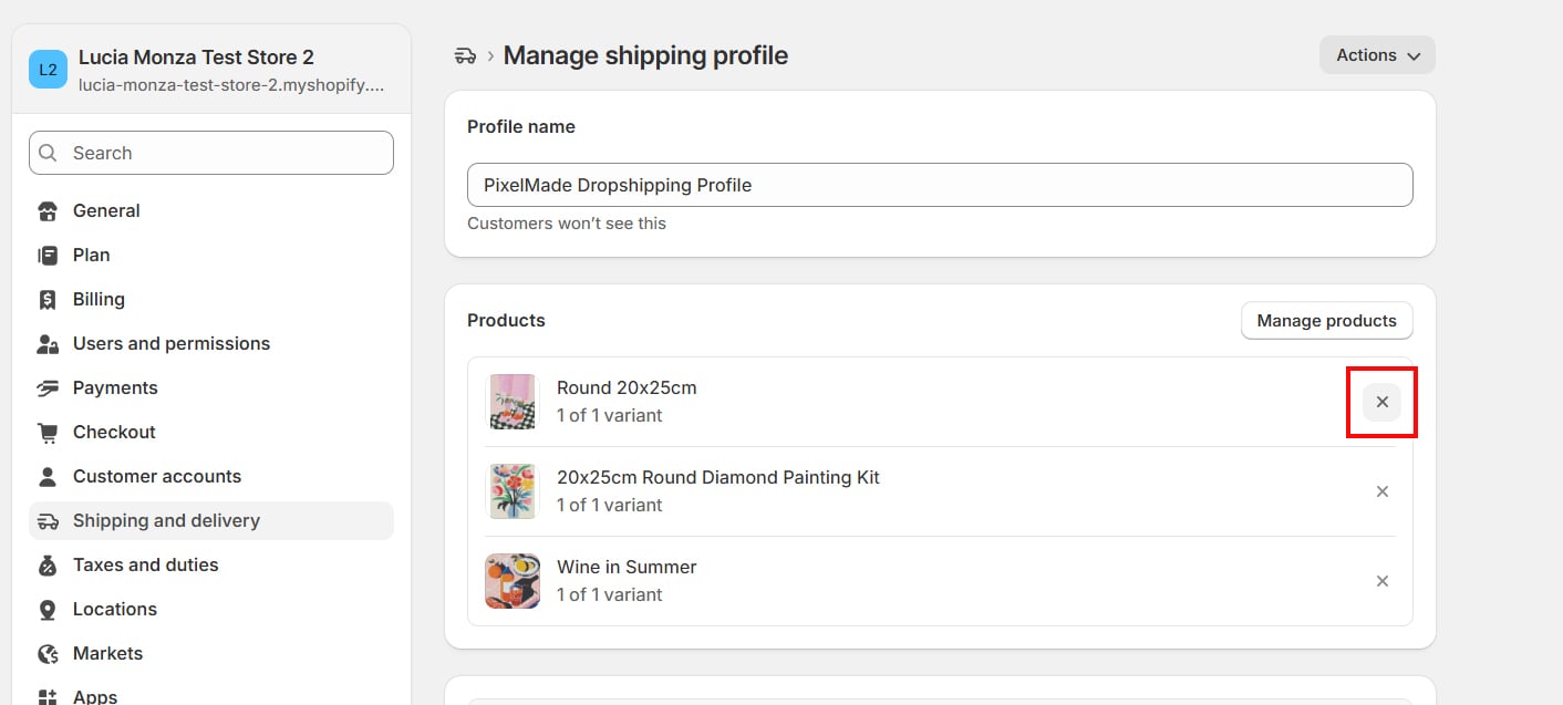 2. Remove Pixelmade product from Pixelmade shipping profile and assign it to your own shipping profile.