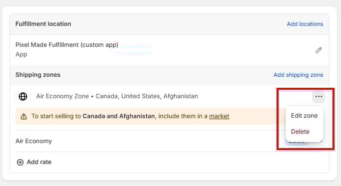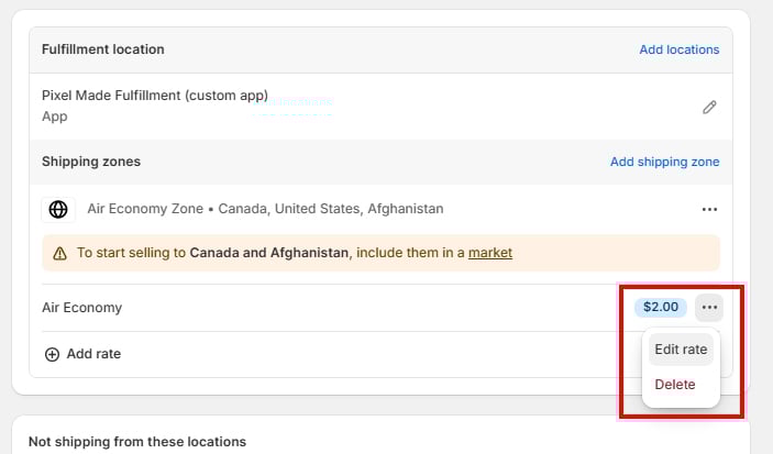 2. Edit the shipping rate by clicking "Edit rate" based on your pricing strategy