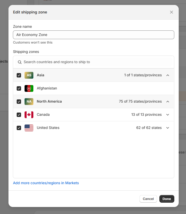 3. Remove a country from the list by clicking "Edit zone" if you don't want to sell your products to that country.